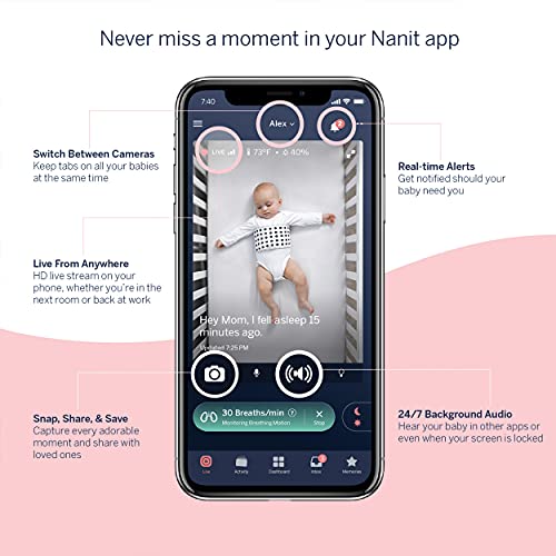24/7 GEMOEDSRUST: bekijk de ademhalingen/minuut van je baby in realtime. Mocht ze je ooit nodig hebben, klinkt Nanit een alarm op je camera en in je app.