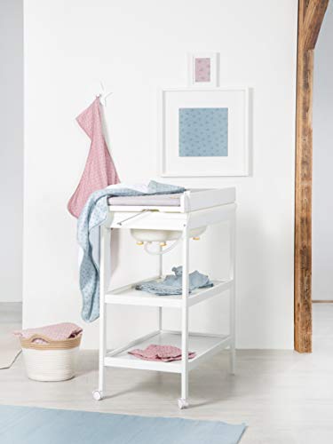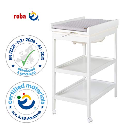 Roba Baby Pool-combinatie met draaibare aankleedkussen”Roba style grijs”, luierrek van hout, babybadstation met geïntegreerde Badkuip, wit, 2 remwielen
