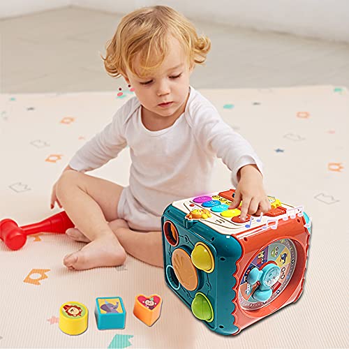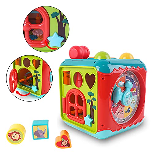 Specification: deAO 7-in-1 Sorteer & Ontdek Educatief Baby Activiteits Kubus met Vorm Sorteren, Licht en muziek voor babies en peuters.