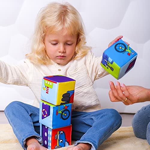 Intelligent design: deze kubuspuzzel voor kleine kinderen toont het voertuig. Dit activity speelgoed baby met motorisch speelgoed baby vanaf 6 maanden helpt je kind de wereld om hem heen met kleurrijke afbeeldingen te verkennen. Bovendien zijn de kubussen vrij stabiel om softblokdeuren van zachte blokken te bouwen en ze gemakkelijk te breken.