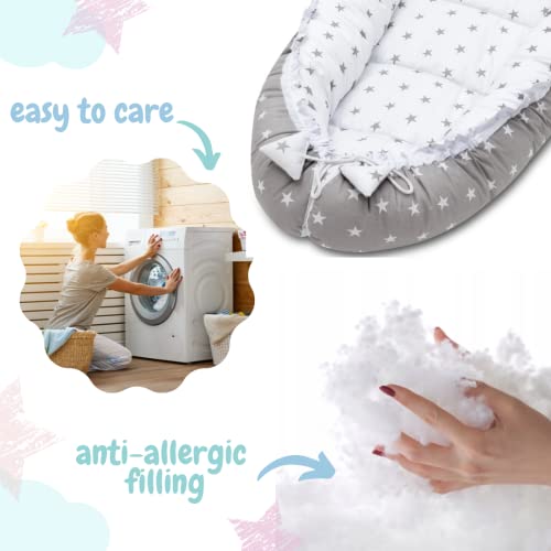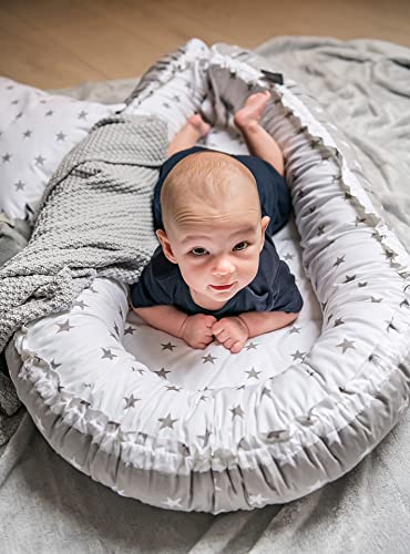 ADEMEND SLAAPOPPERVLAK: U kunt deze snooze-pod op de grond of in de tuin gebruiken. Voor verblijf buitenshuis biedt het babynest het extra voordeel dat het uw baby helpt zich gelukkig en veilig te voelen in een vertrouwde slaapomgeving. De drukke moeder zal de lichtgewicht constructie van het nest waarderen, waardoor het gemakkelijk door het huis kan worden verplaatst.