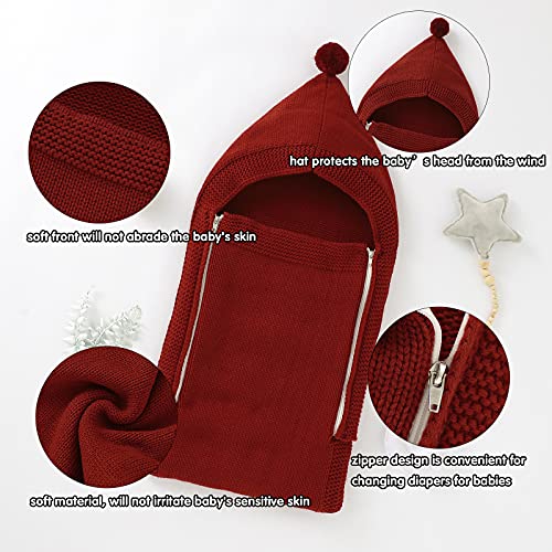 【Multifunctioneel ontwerp】Het ontwerp met capuchon aan de bovenkant beschermt het hoofd van de baby tegen wind. Het ritsontwerp aan beide zijden kan de inbakerdeken snel openen om de luier van de baby te vervangen. De breitechniek heeft een ademend effect.