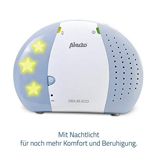 Alecto DBX-85 Digital Eco DECT babyfoon (100% storingsvrij), lang bereik tot 300 meter met intercomfunctie, LED-ruisweergave en nachtlampje