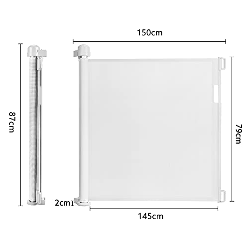 Het intrekbare design-babyhek is tot 150 cm breed en 87 cm hoog. Het net kan bij niet-gebruik volledig worden ingetrokken, waardoor je ruimte bespaart.