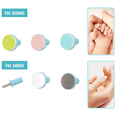 ♥ 6 in 1 nagelverzorgingsset VOOR BABY EN MOM: Beter dan andere, deze baby nagelvijl heeft 6 slijpkoppen.geel voor 0-3 maanden baby, roze voor 4-11 maanden baby, blauw voor meer dan 12 maanden baby, metaal en wit voor nagellak, cilindrische slijpkop voor volwassen slijpen.