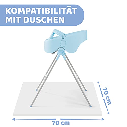 BABYSTOEL MET VOET VOOR DOUCHE: Neemt weinig ruimte in beslag en kan worden gebruikt in een standaarddouche (70×70 cm); dankzij de praktische voet zit het kind op dezelfde hoogte als de ouders zodat deze niet hoeven te bukken
