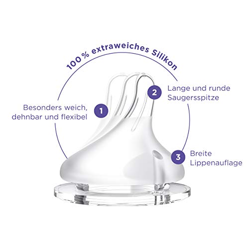 Extra zachte zuignap – rekbaar en bijzonder flexibel, gatgrootte M – gemiddelde melkstroom, zuigpunt – binnen versterkt voor meer stabiliteit