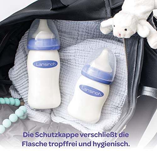 De ergonomisch gevormde Lansinoh-fles met wijde hals en NaturalWave-speen is eenvoudig te monteren, te vullen en schoon te maken. De beschermkap is niet-druipend en hygiënisch. De speen is gemaakt van 100% siliconen – extra zacht – elastisch en bijzonder flexibel. Gatgrootte M – gemiddelde melkstroom. Zuignap – versterkt aan de binnenkant voor meer stabiliteit. Brede zuigbasis met anti-aanbakstructuur voor optimale mondsluiting en effectieve zuigkracht. AVS vermindert het slikken van lucht en mogelijk koliek. Met de NaturalWave-speen kan de baby het zuigpatroon dat hij heeft geleerd op de borst houden. Materiaal BPA & BPS vrij. Alle flessen met brede hals van Lansinoh zijn geschikt voor gebruik in de magnetron en in de vaatwasser. Inhoud: Inhoud: 2 flessen met brede mond van 240 ml, 2 x NaturalWave-zuignappen, maat. M, 2 x beschermkappen (transparant) Opmerking: er zijn geen borgplaten nodig voor transport, omdat de meegeleverde beschermkap de NaturalWave-stofzuiger goed sluit. Compatibel met alle andere zuignapmaten van Lansinoh (bijv. Maat S of maat L) en alle borstpompen (elektrische borstpompen en handmatige borstpomp) van Lansinoh Materiaal: polypropyleen (fles), siliconen (zuignap)