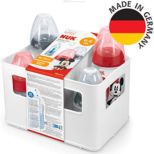 Starterset met NUK First Choice+ babyflessen | 0-6 maanden | 4 babyflessen met temperatuurcontrole en flessenkrat…