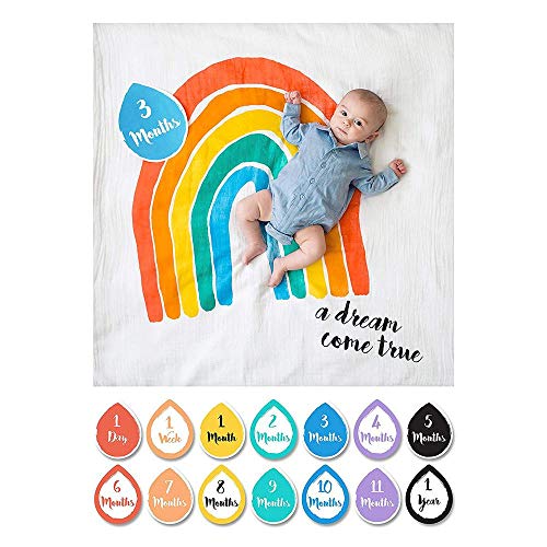 Set voor het eerste jaar: deze mosseline met kaartenset is de ideale rekwisieten voor foto’s van je kinderen. Gebruik de deken als achtergrond en kaarten om de leeftijd van je kind te laten zien, van één dag tot één jaar.