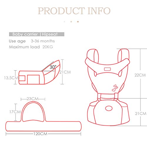 Toepasselijke leeftijd en gewicht: 3-36 maanden baby, maximale belasting: 20 kg, en verstelbaar de taillemaat kan tot 47,2 inch (ca. 120 cm.