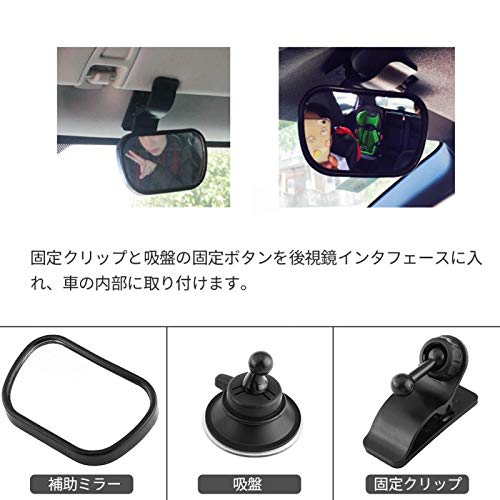 【GEMAKKELIJK TE INSTALLEREN】 De verstelbare achteruitkijkspiegel voor het babyzitje is klein, compact, ruimtebesparend en hindert de zichtbaarheid van het achterzicht niet, dat eenvoudig te installeren is, met zuignappen en clips, en stevig kan worden geïnstalleerd op de voorruit en zonneklep.