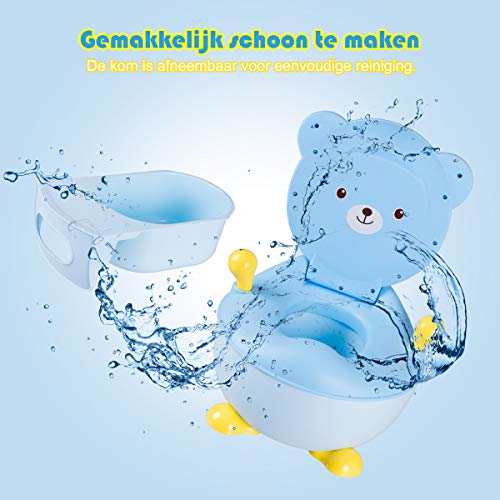【Zorg voor veiligheid】De handgrepen aan beide zijden van het kinderpotje zijn gemakkelijk vast te pakken, zodat u zich geen zorgen meer hoeft te maken dat uw kind valt, de voetjes zijn antislip en voorkomen uitglijden of omvallen.