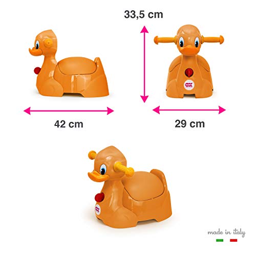 Quack: het grappige babypotje in de vorm van eend met ergonomische zitting. Het voorste gedeelte is afneembaar voor eenvoudige reiniging. Het potje wordt geleverd met een deksel voor gemakkelijk transport.
